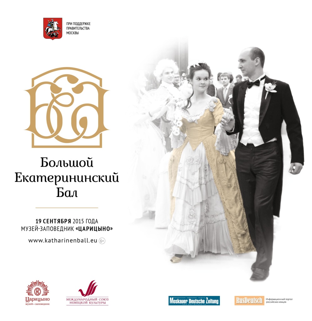 Большой Екатерининский Бал в Царицыно 19 сентября 2015 года в Москве на территории музея-заповедника «Царицыно» при поддержке Правительства Москвы состоится Большой Екатерининский Бал – новый культурно-просветительский проект Международного союза немецкой культуры. Мероприятие задумано и проводится по канонам лучших бальных традиций XVIII века. В программу мероприятия включены основные бальные развлечения Екатерининского периода: исторические танцы, салонные игры, мастер-классы по этикету, музыкальные и театрализованные представления, выставки и благотворительная лотерея. Большой Екатерининский Бал – ежегодное масштабное событие, посвященное традициям и культуре эпохи Екатерины II. Бал носит не только развлекательный, но и просветительский, образовательный характер: одной из основных составляющих Бала являются исторические выставки и презентации. Во время бального вечера состоится торжественная церемония награждения победителей ежегодного V Всероссийского конкурса «Лучшие имена немцев России» / „Russlands herausragende Deutsche” 2015 года. Ранее лауреатами Конкурса в разных номинациях становились артисты Эдуард Хиль, Георгий Штиль, президент Гильдии межэтнической журналистики Маргарита Лянге, спортсмены Михаил Вебер, Ольга Граф и другие. Бал проводится Международным союзом немецкой культуры (МСНК) при поддержке Правительства Москвы. Директор Бала – первый заместитель председателя Международного союза немецкой культуры Ольга Мартенс.