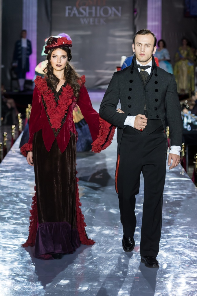 На подиуме Estet Fashion Week модели Валерия Кириченко и Мухаммед Махаев с величием представили образы князя и княжны Чечевинских.
