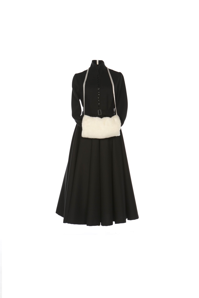 Так вот, то самое черное платье с муфтой в «Прокат Останкино». Оно великолепно сохранилось и его можно взять в аренду.